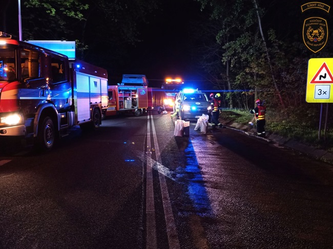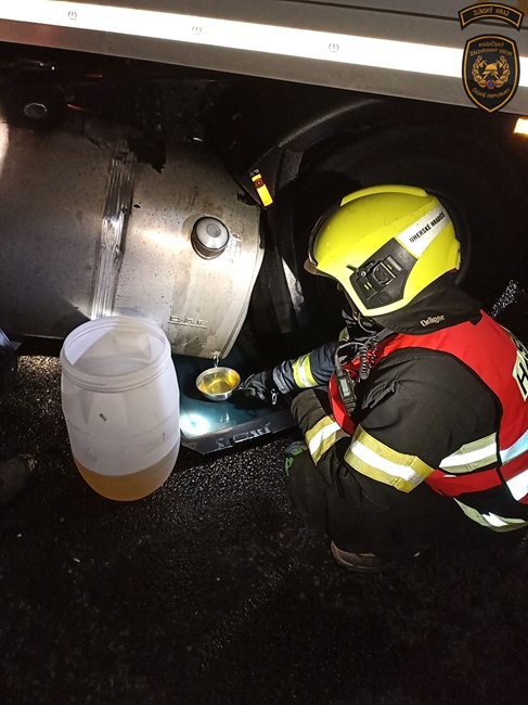 Po střetu došlo k velkému úniku provozních kapalin. „Dalšímu odtékání po silnici zabránili pomocí sorpčních hadů. Vzhledem k rozsáhlému znečištění komunikace si velitel zásahu na místo povolal pracovníky správy a údržby silnic, kteří zajistí úklid povrchu silnice,“ sdělila mluvčí hasičů Lucie Javoříková.