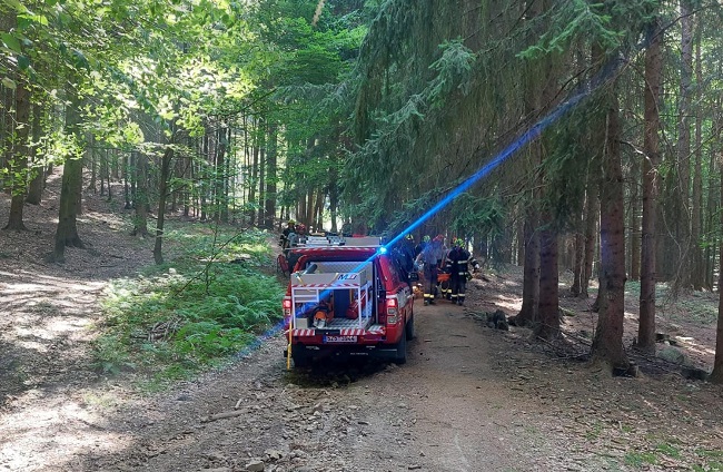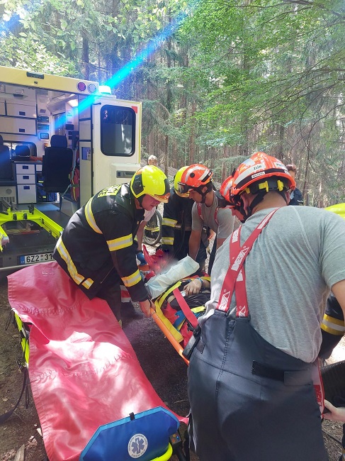 Tísňovou výzvu záchranáři obdrželi po 14 hodině a hned jim bylo jasné, že cesta k pacientovi nebude vůbec jednoduchá. „Terén byl velmi náročný, mobilní signál v místě byl značně nestabilní – spojit se s volajícím kamarádem zachraňovaného muže bylo takřka nemožné. V tu dobu okolo našich záchranářů projížděli právě tito dva cyklisti, kteří se do hledání okamžitě zapojili také, stejně jako našim posádkám pomáhali nést záchranářské batohy. Jen pro představu – hodinky naší lékařky ukázaly, že při tomto zásahu nachodila 7,5 kilometru!“ vypráví mluvčí záchranářů Gabriela Netopilová Sluštíková.