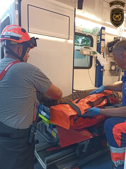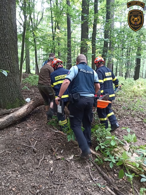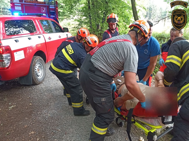 Vzhledem k těžce přístupnému terénu museli hasiči s vybavením dojít asi 300 metrů. „Před jejich příchodem se podařilo spolupracovníkovi muže nohu uvolnit. Hasiči poskytli muži první předlékařskou péči. Dali jej do vakuových a následně i do vanových nosítek. V nich pak muže ve spolupráci s policisty transportovali asi 40 metrů do terénního automobilu, který pro tyto případy slouží. Tímto vozidlem pak převezli zraněného až na zpevněnou cestu, kde již byla posádka zdravotnické záchranné služby, která si muže převzala do své péče,“ vylíčil mluvčí hasičů David Martinec.