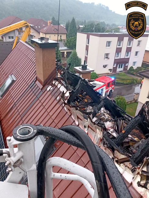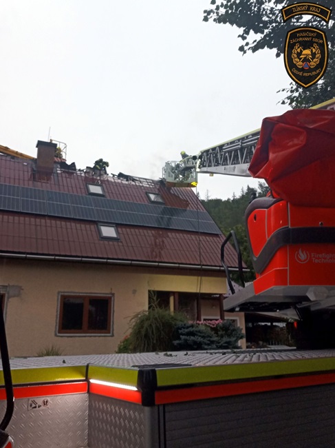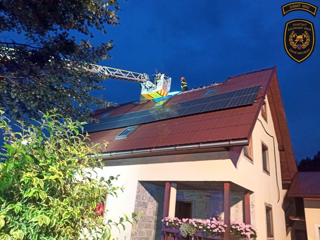 Krátce před šestou vyjeli hasiči do Dolní Bečvy, kde po úderu blesku začala hořet část střechy rodinného domu. „Protože se požár šířil pod plechovou krytinou, bylo nutné ji postupně rozebírat a vyhledávat skrytá ohniska ve střešní konstrukci. Všechny prostory byly zkontrolovány termokamerou, a po vyloučení dalšího nebezpečí byla ve 20:07 hodin ohlášena likvidace. Plameny se díky rychlému zásahu nerozšířily do vnitřních prostor, ale i tak byla škoda předběžně vyčíslena na 700 000 korun,“ vylíčil Řezníček.