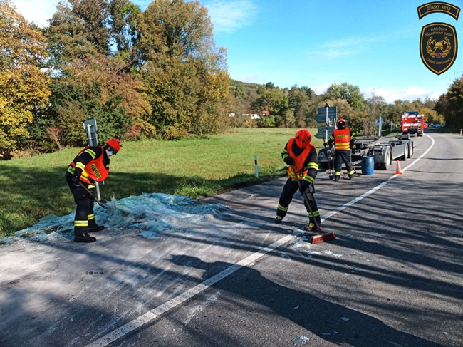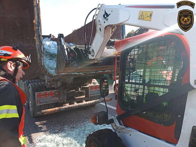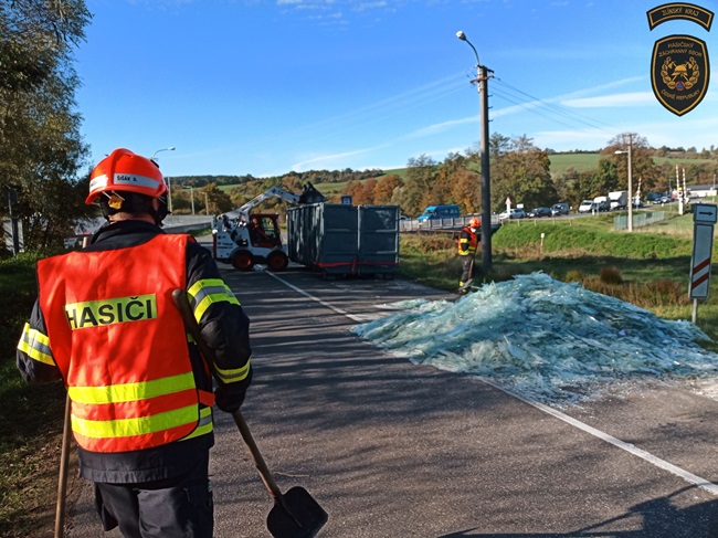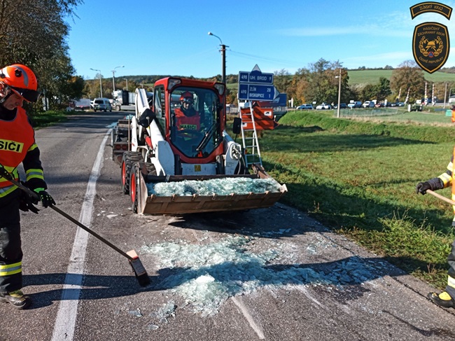 Hasiči odtáhli přívěs, aby se lépe dostali k vysypanému nákladu a velitel zásahu si na pomoc povolal kolegy ze zlínské stanice s nakladačem. Pomocí něj odstranili sklo ze silnice. Na závěr komunikaci pořádně zametli a provoz mohl být v obou jízdních pruzích znovu obnoven.