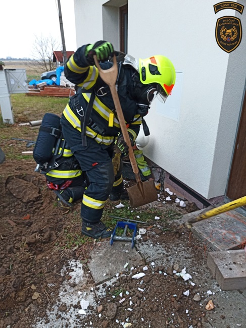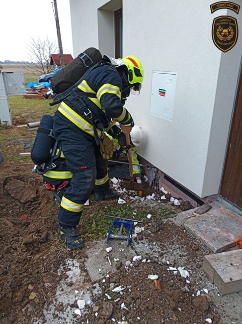Současně hasiči pro případ potřeby rozvinuli a zavodnili dopravní vedení. „Vybaveni dýchací technikou ve spolupráci s plynaři obnažili poškozené vedení a za pomoci svorky zamezili dalšímu úniku. V průběhu zásahu měřili průběžně koncentrace v okolí domu i uvnitř. Zvýšenou koncentraci naměřili v podkroví, které přirozeně odvětrali,“ vylíčil Martinec.