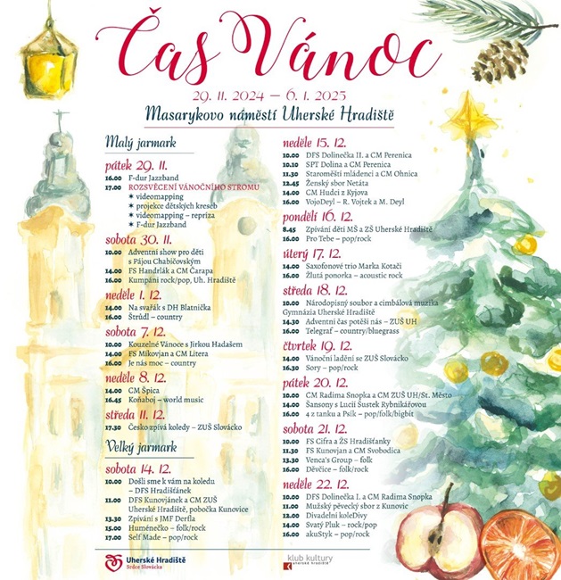 Malý jarmark, tedy prodej v celodřevěných stáncích odstartuje spolu s rozsvěcením vánočního stromu v pátek 29. listopadu. Stánky budou otevřené až do pondělí 6. ledna 2025.