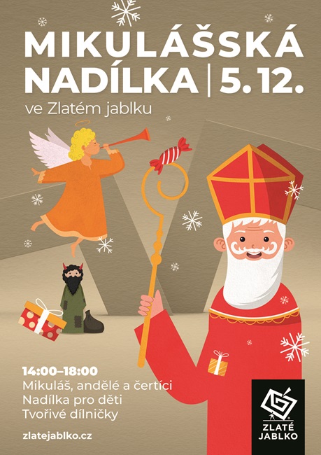 ZLÍN – Malé návštěvníky obchodního centra Zlaté jablko čeká tradiční mikulášská nadílka. Ve čtvrtek 5. prosince od 14 do 18 hodin se zde mohou potkat nejen s Mikulášem, ale i s několika anděly a čerty.