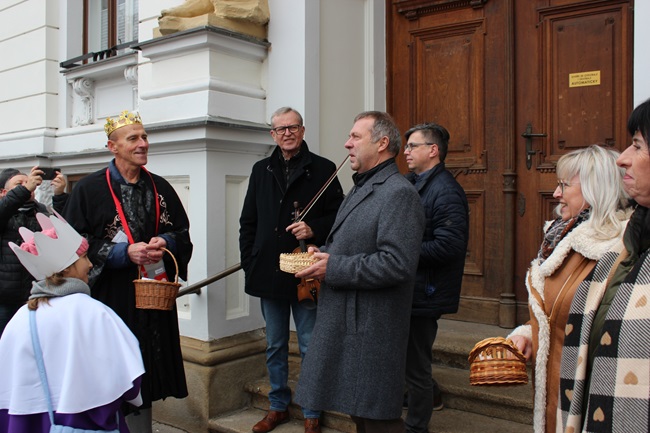 Tři králové na koních a s doprovodem vyrazili zahájit sbírku od budovy Charity přes Mariánské náměstí a ulici Prostřední ke Stanclově lékárně, zastavili se také u místní římskokatolické farnosti. Poté první letošní koledování zakončili před radnicí, kde je přivítali členové vedení města v čele se starostou Stanislavem Blahou.