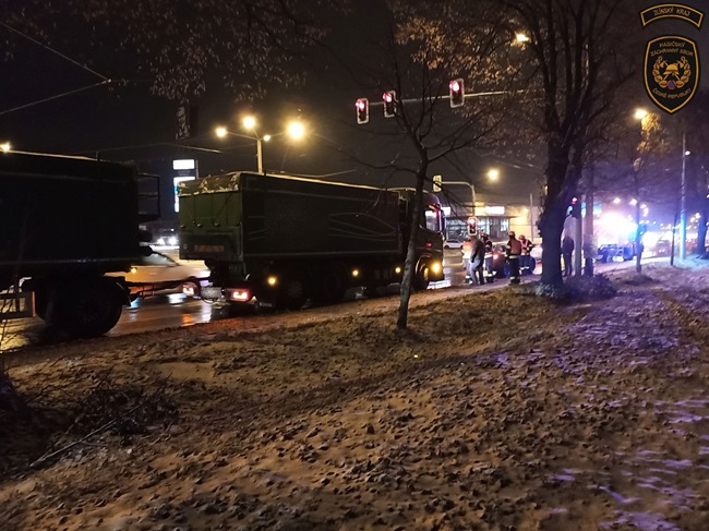 Další nehoda následovala po šesté v Malenovicích, kde se střetlo nákladní auto s osobním. I v tomto případě se nikomu nic nestalo.