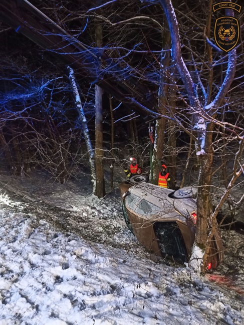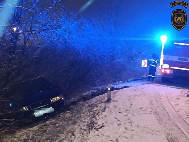 K první havárii vyjížděli hned po čtvrté hodině ranní do Zádveřic na Zlínsku, kde řidič sjel mimo cestu. „Po příjezdu hasiči vozidlo stabilizovali proti pohybu a velitel zásahu si povolal kolegy s vyprošťovacím automobilem. Pomocí něj havarovaný vůz vytáhli zpět na cestu. Zraněný řidič skončil v nemocnici,“ popsala mluvčí hasičů Lucie Javoříková.