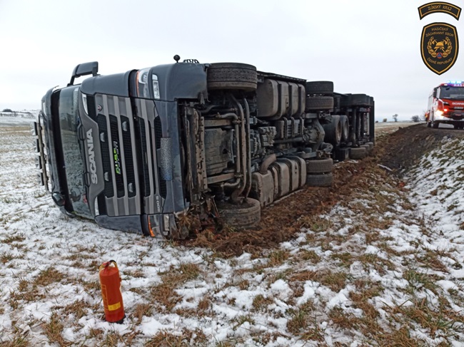 Hasiči u vozu provedli protipožární opatření a informovali zástupce životního prostředí o možném úniku provozních kapalin do půdy, protože auto leželo na nádržích a do zvednutí kamionu zpět na kola nebylo možné únik vyloučit. „Samotný překlad nákladu, který řidič převážel, a vytažení vozidla zpět na cestu zajistí firma, v jejímž majetku vůz je. Lze tak předpokládat dlouhodobější omezení v dopravě v místě nehody,“ sdělila mluvčí hasičů Lucie Javoříková.