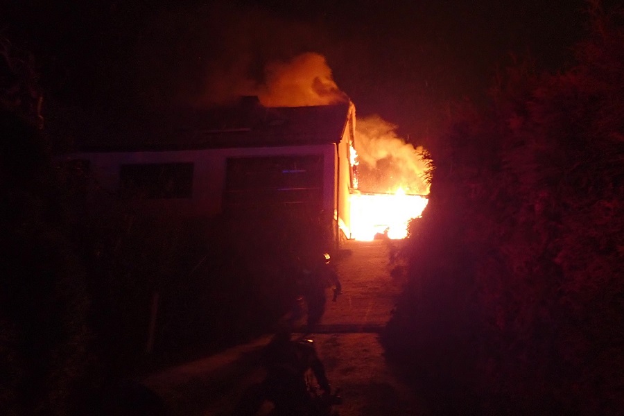 Už při příjezdu i následným průzkumem bylo velitelem zásahu ohlášeno, že je ohněm zasažena celá vnitřní část objektu. „Hasiči zahájili hašení požáru za pomocí tří C proudů vody. Hasební práce probíhaly z vnějšku z nastavovacích žebříků i zevnitř objektu. Během necelých deseti minut od příjezdu se podařilo požár lokalizovat,“ popsal mluvčí hasičů David Martinec.