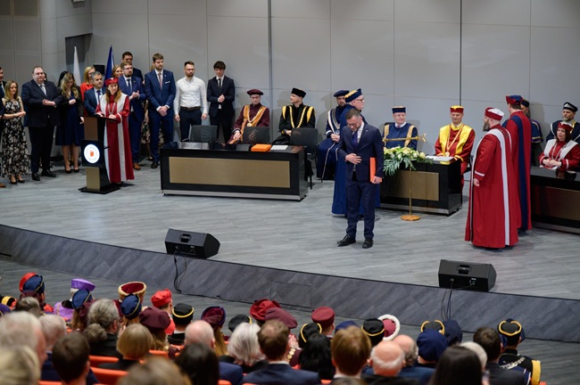 „V případě profesora Kučery se jedná o mimořádnou vědecko-pedagogickou osobnost světových parametrů. O to více si naše univerzita cení spolupráce s panem profesorem, který na přelomu osmdesátých a devadesátých let opakovaně přijížděl na Katedru automatizace, tehdy spadající pod Fakultu technologickou VUT v Brně se sídlem ve Zlíně, přednášet studentům oboru ASŘ problematiku algebraického přístupu k řešení diskrétního řízení. Po vzniku UTB ve Zlíně se stal členem univerzitní Vědecké rady a situace se zopakovala po vzniku Fakulty aplikované informatiky v roce 2006, kdy čtyři roky byl členem její Vědecké rady,“ uvedl k ocenění rektor Milan Adámek.