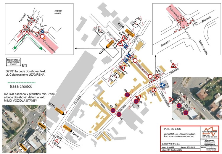 Motoristé budou muset využít objízdné trasy přes ulice Hulínská a Bílanská. Oprava se dotkne i chodců, neboť si vyžádá i uzavření přechodu ve zmíněné části ulice Čelakovského.