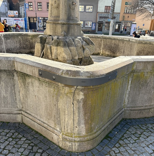 Do kašny, která je dominantou náměstí, není nyní možné napouštět vodu kvůli četným prasklinám. Bude proto kompletně rozebrána a osazena novou železobetonovou monolitickou deskou. „Těleso kašny bude zhotoveno jako nová kopie z pískovce a v kašně bude instalována nová vodní nerezová technologie. Původní středový pylon bude restaurován v ateliéru a na závěr bude osazen zpět na původní místo v novém tělese kašny,“ popsal vedoucí odboru investic Libor Pecháček.