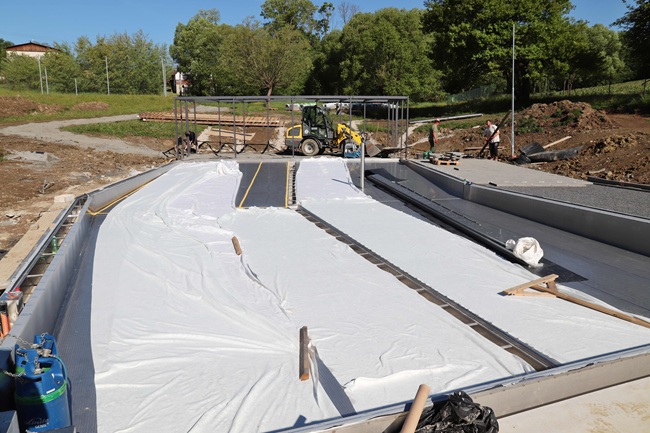 Nové nerezové vany i celá bazénová technologie už jsou na svých místech. Nyní se staví pergola, dláždí se okolní plochy a dokončuje se rekonstrukce sociálního zařízení. V nejbližších dnech také začnou terénní a sadové úpravy. „Z pohledu bazénů a jejich technologií už je vše takřka hotovo, stavebně se tedy přesouváme k dokončovacím pracím, jako je montáž brodítek nebo oplocení. Nad rámec původního projektu jsme také nechali zrekonstruovat budovu šaten a sociálního zařízení a dochází i k částečné obnově vybavení bufetu,“ popsal situaci starosta Josef Bělaška.