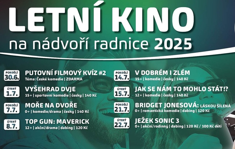 Na programu budou filmy nejrůznějších žánrů, které měly u diváků v posledním roce největší úspěch. „Už v červenci se mohou diváci těšit na české komedie Vyšehrad dvje, Moře na dvoře či V dobrém i zlém, nebo na pokračování slavných sérii Top Gun a Bridget Jonesová,“ upřesnil radní Jiří Kašík.