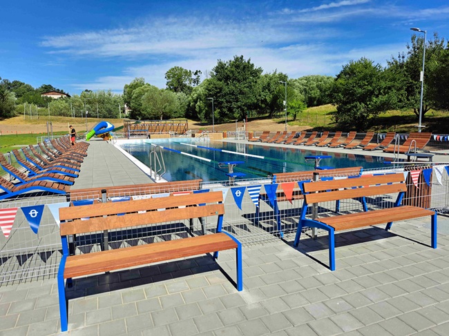 Lidé mají k dispozici dva nerezové bazény, z nichž jeden je určen plavcům a druhý je uzpůsobený pro dětské vodní radovánky. Nejmenším je v dětském bazénu vyhrazeno i bezpečné brouzdaliště s vodními prvky. Okolní terén má nové dláždění zámkovou dlažbou a celková zpevněná plocha se rozšířila o bezmála 250 metrů čtverečních.