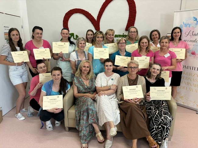 S aromaterapií v domově začali letos v červnu, kdy první tým pracovníků prošel odborným kurzem pod vedením certifikovaných aromaterapeutek z Prahy a Bratislavy, které využívají techniku H.E.A.R.T.S. „Získali jsme nejen teoretické znalosti, ale hlavně praktické dovednosti. Díky tomu můžeme vůně využívat cíleně a bezpečně, například formou difuzérů, masáží nebo koupelí, obkladů, ale také inhalací či aromaterapeutických náplastí,“ přiblížila ředitelka burešovského domova pro seniory Helena Nováková. Klíčovou osobou v oblasti aromaterapie se stala zdejší zaměstnankyně, paní Lucie, která absolvovala vícedenní mezinárodní kurz a své znalosti nyní předává dál kolegům.