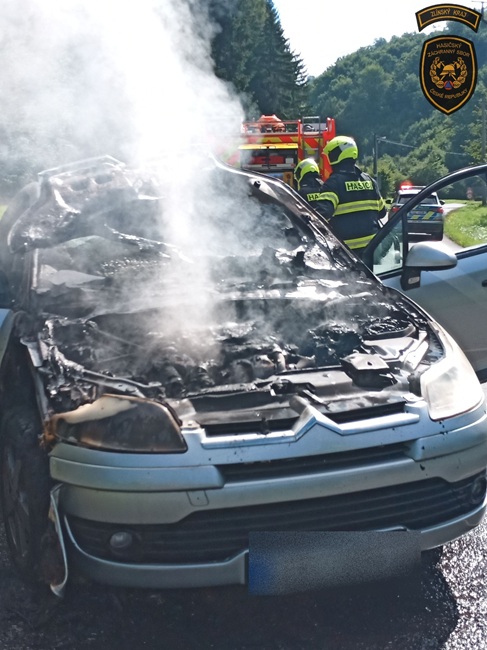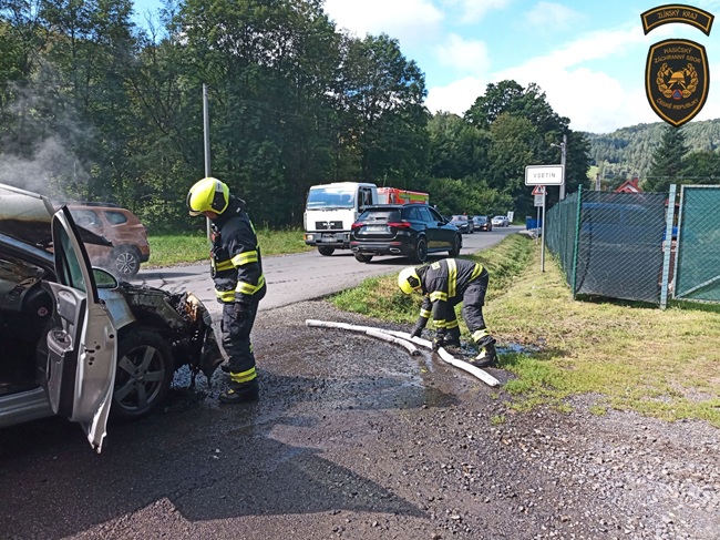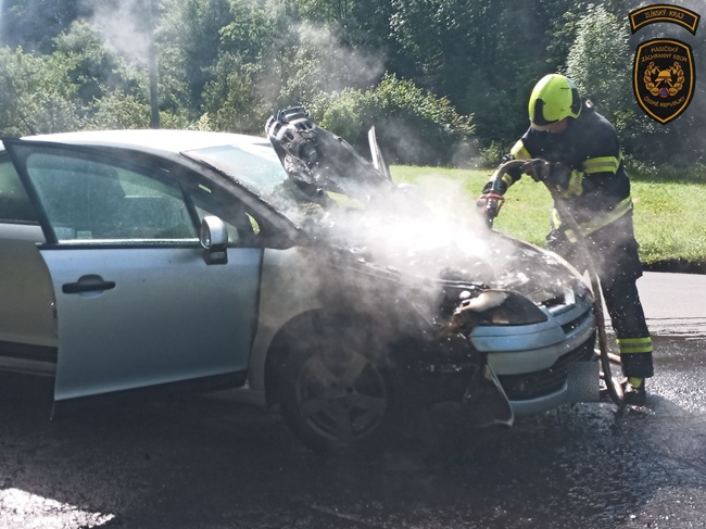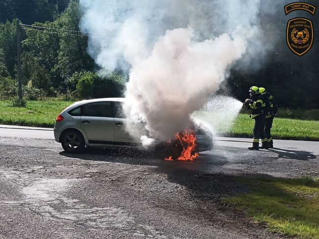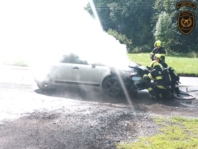 Řidič i jeho spolujezdkyně naštěstí vyvázli bez zranění. Hasiči měli požár během krátké chvíle uhašený.