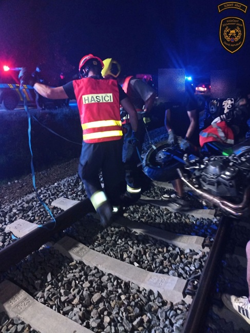 Uherskobrodští hasiči vyjížděli krátce po 20. hodině k havárii motocyklu mezi obcemi Újezdec a Polichno. „Hasiči asistovali zdravotnickým záchranářům při ošetření a transportu zraněného do sanitního vozu. Osvětlovali místo nehody pro potřeby vyšetřování ze strany Policie ČR,“ popsal mluvčí hasičů David Martinec. Jelikož motorka skončila několik metrů od železniční trati, byla v místě omezena rychlost projíždějících vlaků.