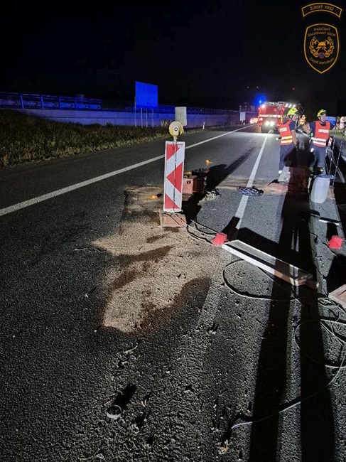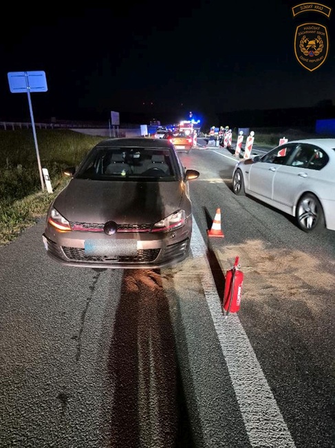 Jen o pár minut později narazilo u Napajedel auto do mobilního dopravního značení a následně poškodilo další projíždějící vůz. Na místo vyjely dvě jednotky hasičů. „Nehoda se obešla bez zranění. Hasiči zasypali uniklé provozní kapaliny z obou vozidel a v místě nehody usměrňovali dopravu,“ dodal Martinec.
