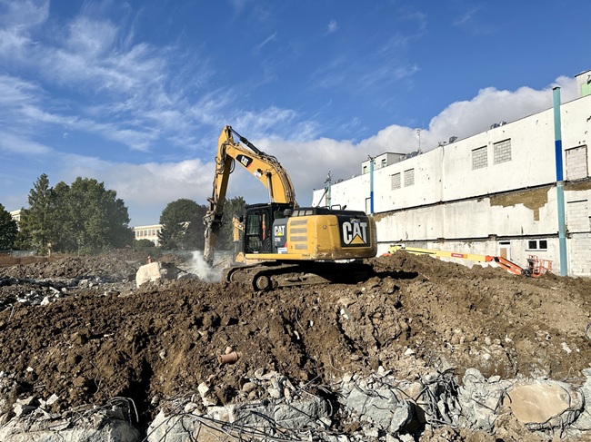 Práce na odstranění původního stadionu začaly v červenci. Nejprve padla technická budova se strojovnou, následovala střecha, tribuny a obvodové stěny. Konec září znamenal dokončení demolice a přípravu prostoru pro pilotáž a montáž nové nosné konstrukce.