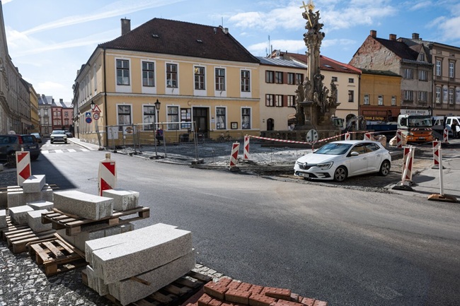 Město okolí morového sloupu mění od srpna. Úpravy se týkají parkovacích ploch, mobiliáře i zeleně. Cílem je zvětšení prostranství okolo sloupu, aby se zvýšila bezpečnost chodců a současně, aby tato dominanta náměstí více vynikla. U sloupu se proto zrušilo kolmé parkovací stání. Vznikl prostor, který opticky propojí s odpočinkovou plochou u budovy, v níž sídlí Úřad pro zastupování státu ve věcech majetkových, komunikace z žulové kostky. Doplní se mobiliář, jako jsou lavičky a odpadkové koše. Zpevněné plochy bude lemovat žulový obrubník tak, aby co nejvíce dotvářely historizující ráz prostoru okolo sloupu. Zeleň doplní tři akáty a další rostliny v mobilních kontejnerech.