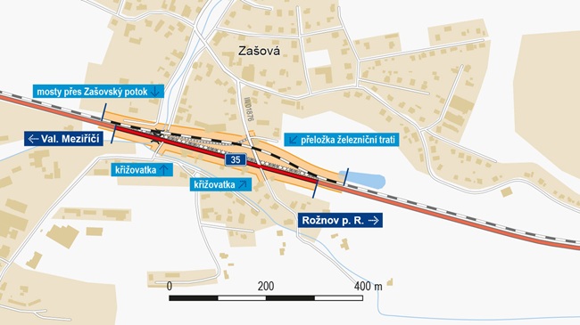 Křižovatka dostane světelnou signalizaci, nové odbočovací pruhy a chodníky. Železniční trať se posune dále od hlavní silnice a současně projde rekonstrukcí i železniční zastávka Zašová.