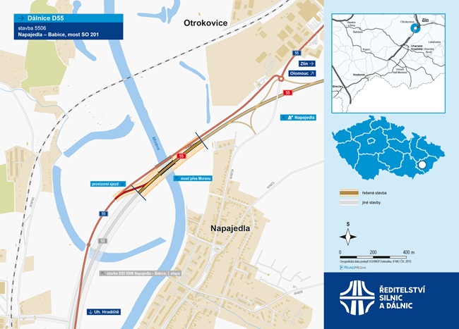 Stavba trvala 32 měsíců a vyšla na zhruba 767 milionů korun bez DPH. Most se stal klíčovým prvkem připravovaného úseku D55 mezi Napajedly a Babicemi, který má stavbaře čekat příští rok.