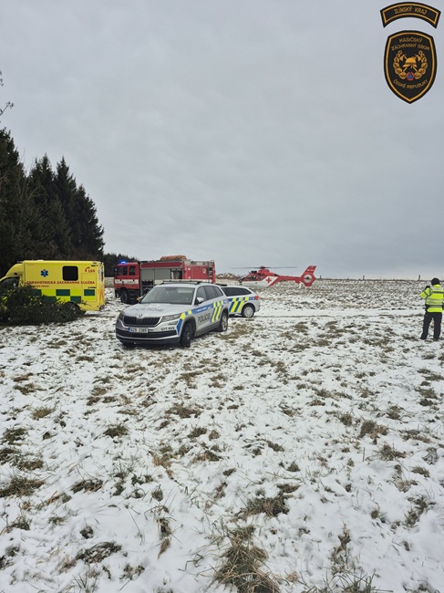 Druhá událost se odehrála krátce před 14. hodinou na Slavičínsku, kde muže zavalil menší traktor. Dispečerka vyslala posádku ze Slavičína a požádala o součinnost letecké záchranáře z Olomouce.