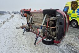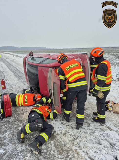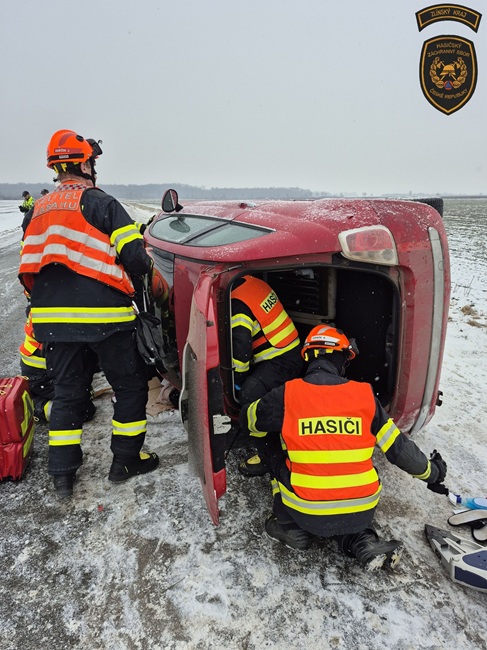 Krátce před polednem zasahovali hasiči také v Kroměříži. Řidič osobního automobilu se na silnici přetočil na bok a zůstal uvnitř zaklíněný. Na místo dorazila jednotka profesionálních hasičů z Kroměříže.