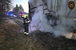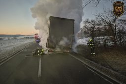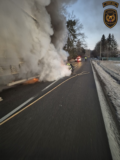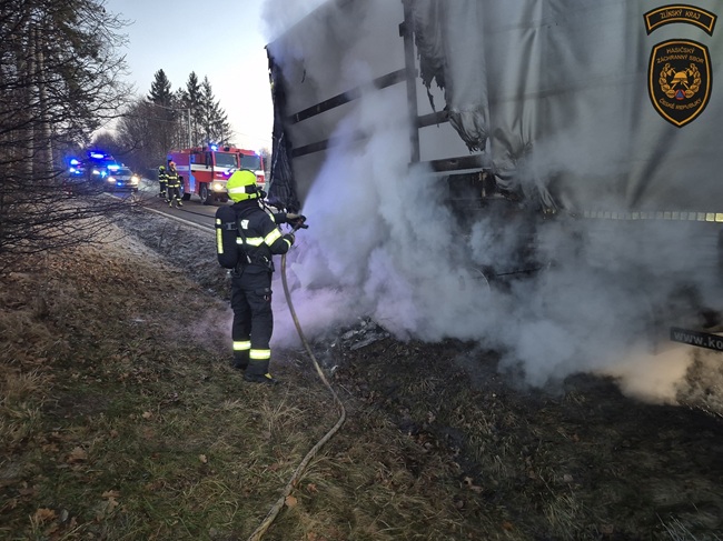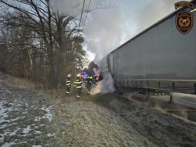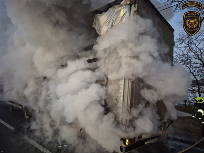 Když hasiči dorazili na místo, byl v plamenech přívěs nákladního auta. Neprodleně proto začali hasit vysokotlakým proudem. „Požár se podařilo v krátké době lokalizovat a zcela uhasit. Následně byl provoz na komunikaci částečně obnoven a vozidla projížděla místem kyvadlově jedním jízdním pruhem. Událost se obešla bez zranění,“ popsala mluvčí hasičů Lucie Javoříková.