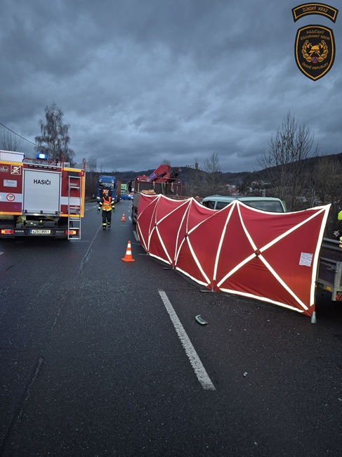 K havárii došlo krátce před sedmou hodinou na obchvatu Vsetínu ve směru na Valašské Meziříčí. „Dodávka prozatím z neznámých příčin zezadu narazila do odbočujícího náklaďáku,“ informoval policejní mluvčí Petr Jaroš.