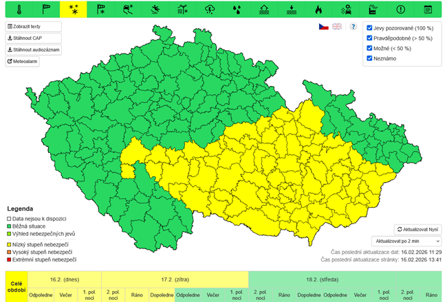 Meteorologové varují před zhoršenými podmínkami pro chodce i řidiče. „Očekávají se komplikace při chůzi, v dopravě, zásobování a podobně,“ uvádí výstraha. Mokré a těžké sněhové srážky mohou způsobovat škody na stromech, lesních porostech i elektrickém vedení a vést k výpadkům v dodávkách energie.
