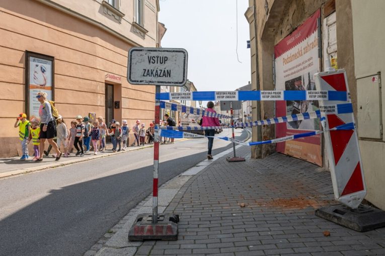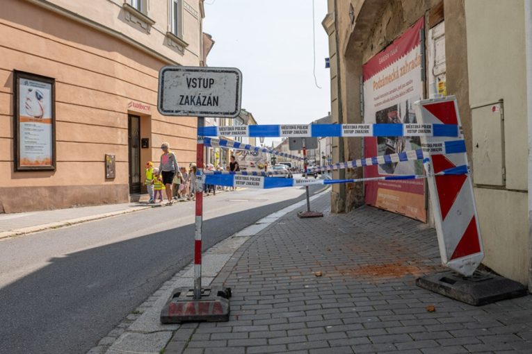 KROMĚŘÍŽ – Městská policie musela uzavřít chodník před dlouhodobě neudržovaným domem číslo 129/1 na začátku Riegrova náměstí. „Dva lidé na linku městské policie oznámili, že z domu padá kus cihel …