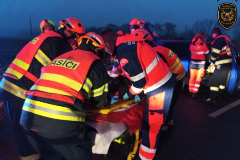 Po nehodě u Chropyně zůstala řidička zaklíněná v autě