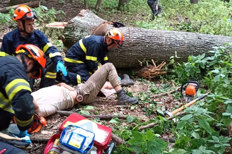 Strom zavalil muži nohu při práci v lese, na pomoc mu přispěchali hasiči