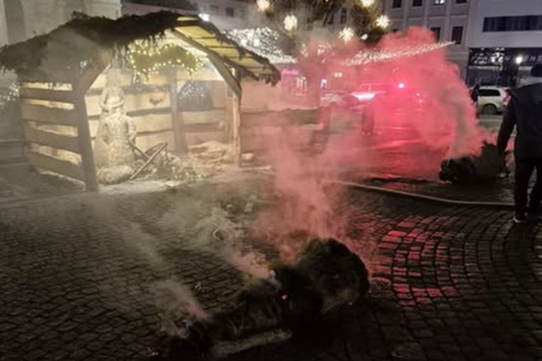 Na Velkém náměstí v Kroměříži hořely slaměné postavy v betlému