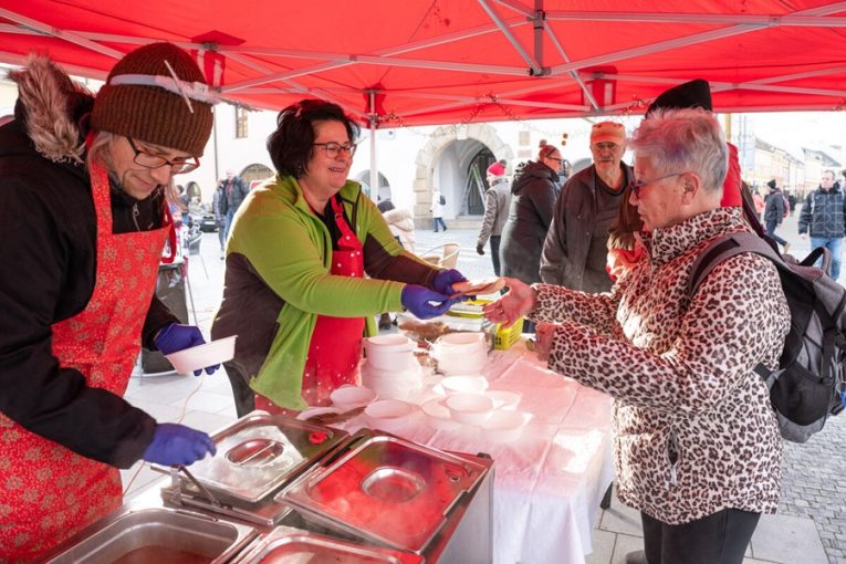 Rybí, gulášová i hrstková. Kroměřížanům se rozdalo 100 litrů tradičních polévek