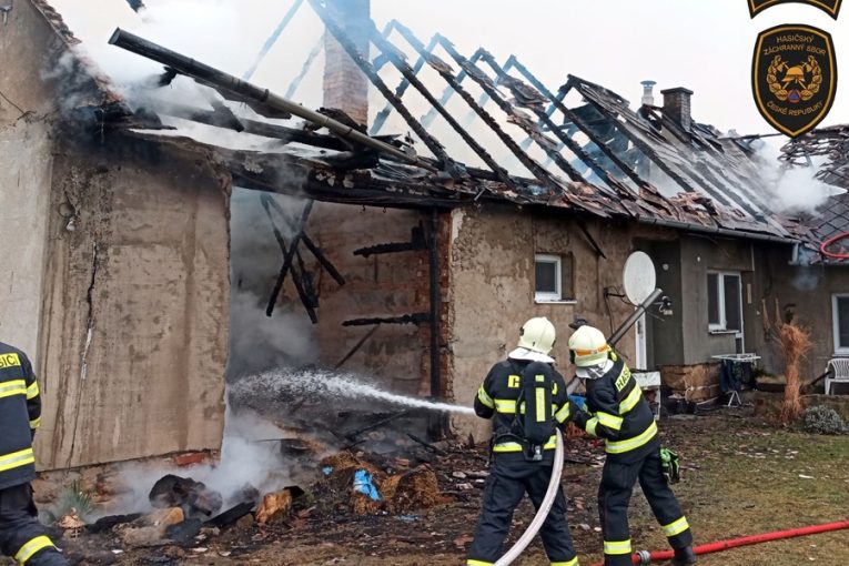 Plameny pohltily střechu rodinného domu v Buchlovicích