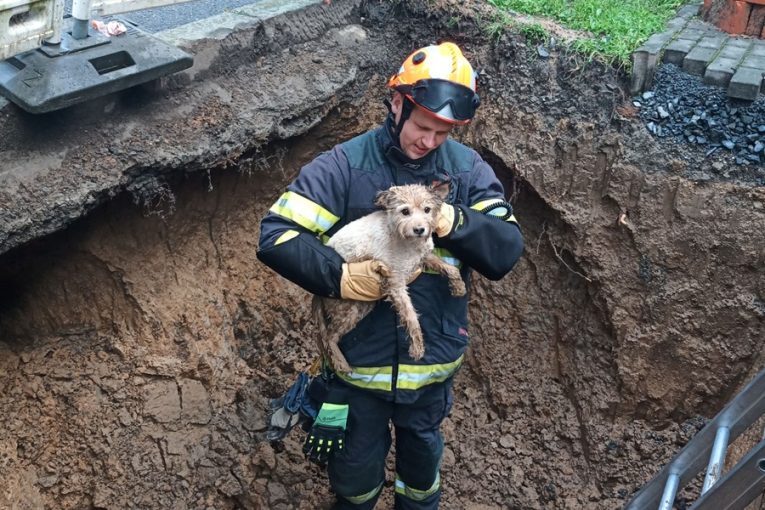 Vyděšený pejsek uvízl ve výkopu, domů se vrátil díky hasičům
