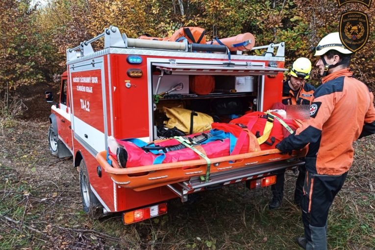 Senior nešťastně uklouzl v lese v Kostelci, z nepřístupného terénu ho museli transportovat hasiči