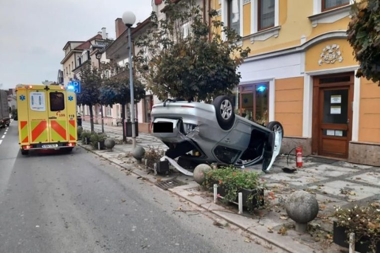 Řidička v Luhačovicích skončila na střeše na chodníku, při havárii těžce zranila chodkyni